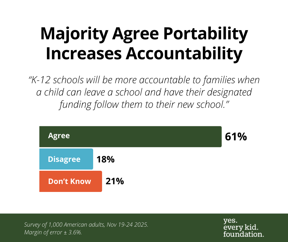 “Americans across the country are united behind education freedom. They want to give families more authority, more flexibility, and more options than the current system offers, and the data shows they are far ahead of the political debate,” said Matt Frendewey, vice president of strategy, yes. every kid. foundation.